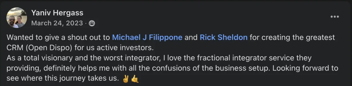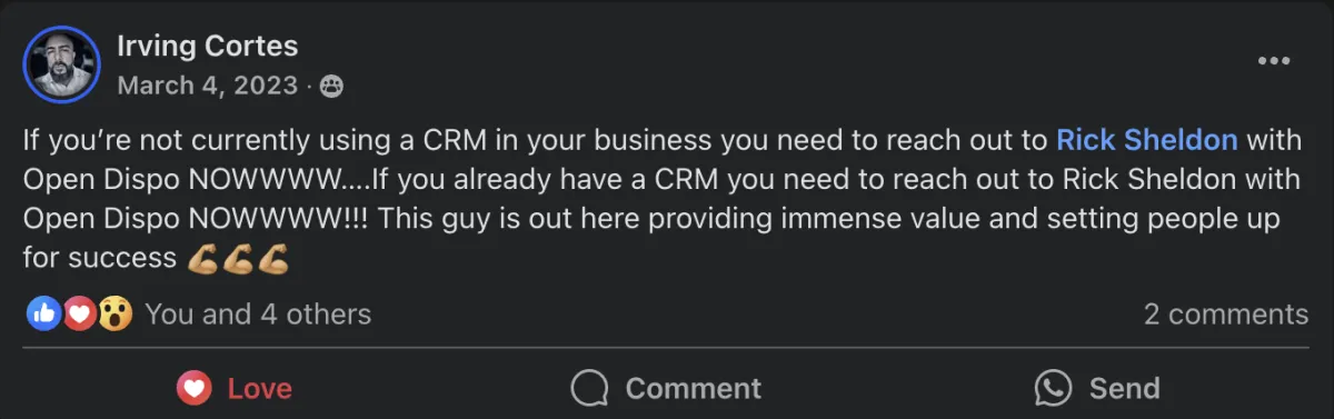 "We were looking for a way to get our business organized, to get our processes organized, and we really felt like Open Dispo was the best way to go ahead and do that." - Irving Cortes